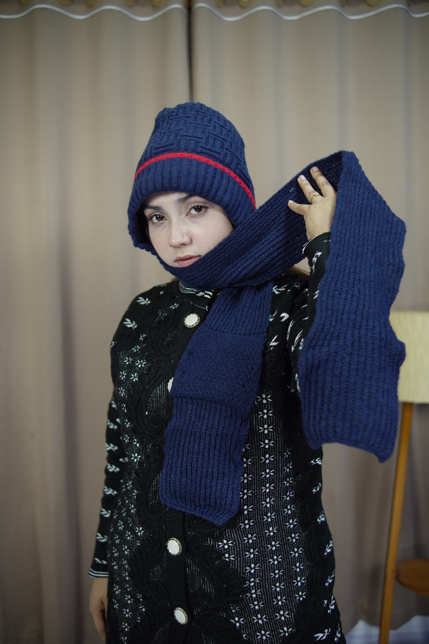 নীল নিট টুপি, লাল স্ট্রাইপের ছোঁয়ায়—আপনার শীতকালীন লুকের জন্য উষ্ণতা ও স্টাইল একসাথে।